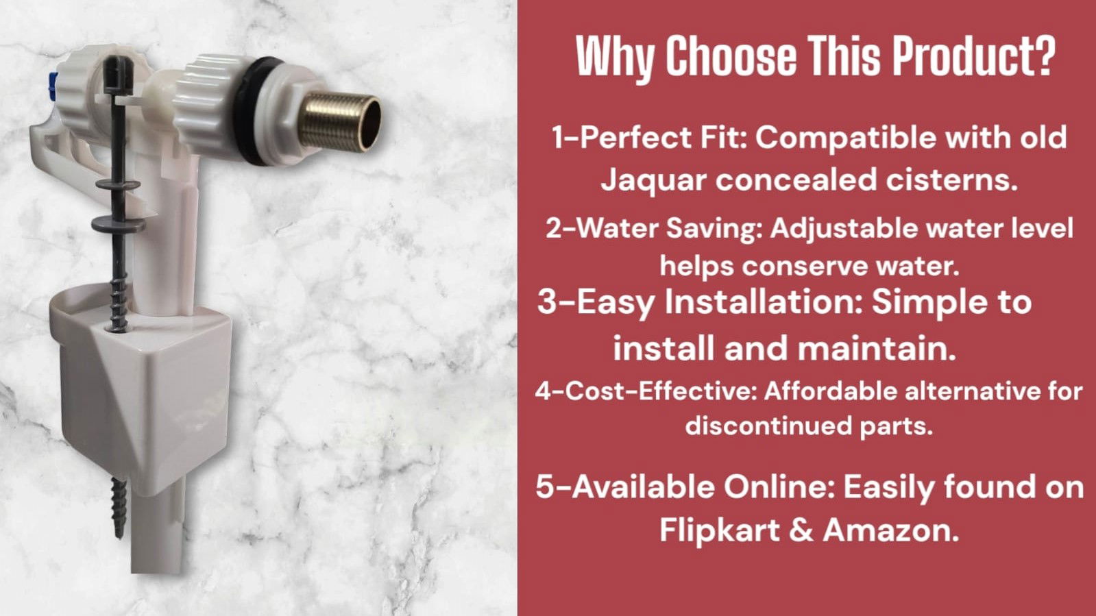A Siamp Type 3/8 Fill Valve is a specific type of fill valve used in toilet cisterns, designed to regulate the flow of water into the tank after a flush. The "3/8" refers to the size of the valve's connection, which is typically 3/8 inch in diameter — a common standard for many residential toilets. The valve controls the water flow, ensuring that the cistern fills to the correct level before automatically shutting off the water supply to prevent overfilling.